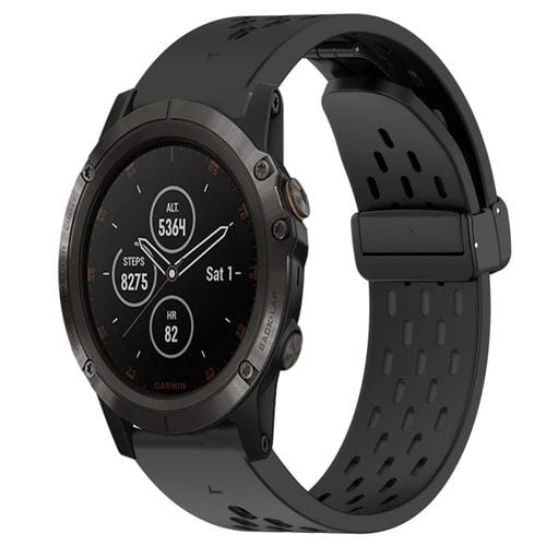 Correa de Silicona para Garmin Fenix 5X Plus con Orificio y Hebilla Plegable 26mm (Negro)