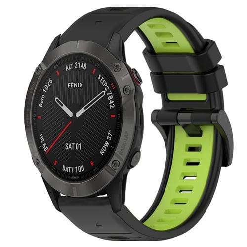 Correa para Garmin Fenix 6 Sapphire GPS 22mm Silicona Deportiva Bicolor (Negro + Verde Lima)