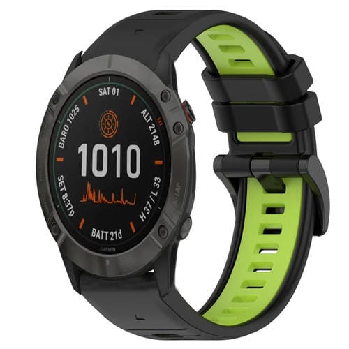Correa silicona deportiva para Garmin Fenix 6X Pro 26mm (Negro + Verde Lima)