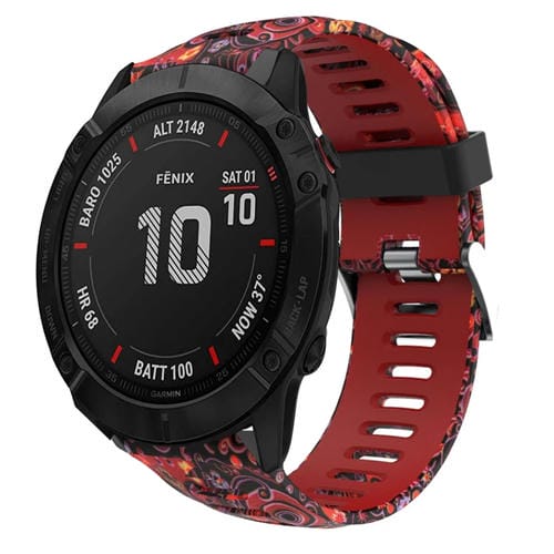 Correa de Silicona para Garmin Fenix 6X Sapphire 26mm con Estampado de Camuflaje (Rojo + Medusas)