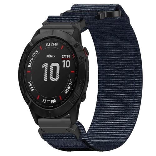 Correa de Reloj para Garmin Fenix 6X Sapphire con Cierre Gancho y Bucle de Nailon 26mm (Azul)