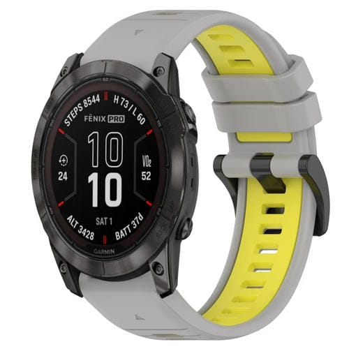 Correa deportiva silicona para Garmin Fenix 7X Pro 51mm 26mm (Gris + Amarillo)