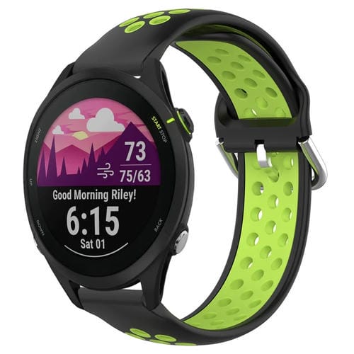 Correa de Reloj para Garmin Forerunner 255 22mm Silicona Deportiva Transpirable Perforada (Negro + Lima)