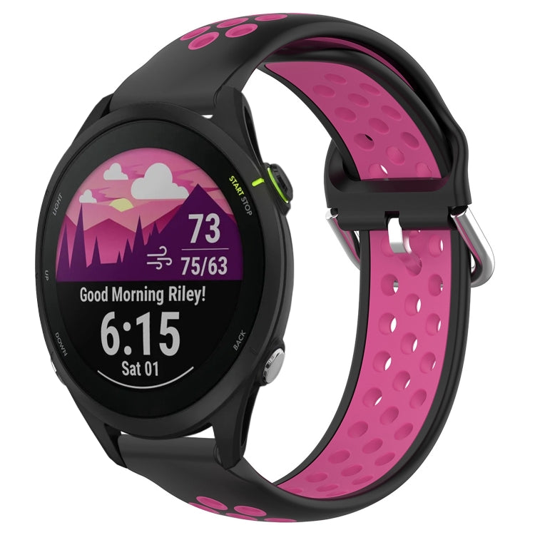 Correa de Reloj Garmin Forerunner 255 22mm Silicona Deportiva Transpirable Perforada (Negro + Rojo Rosa)