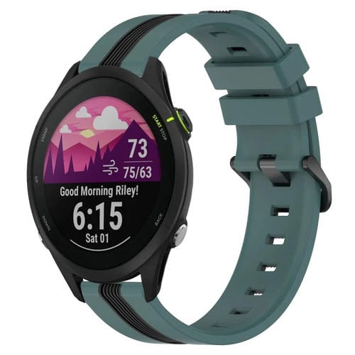 Banda de Reloj de Silicona para Garmin Forerunner 255 Music 22mm Dos Colores Vertical (Verde + Negro)