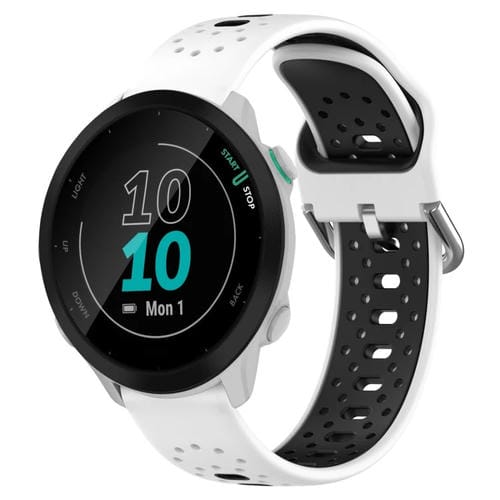 Banda de Reloj Garmin Forerunner 55 20mm Silicona Transpirable Dos Colores (Blanco + Negro)