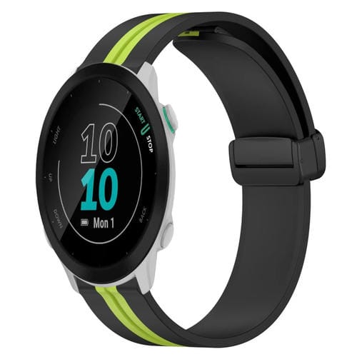 Correa de Reloj para Garmin Forerunner 55 20mm Silicona con Cierre Magnético Plegable (Negro + Verde Lima)