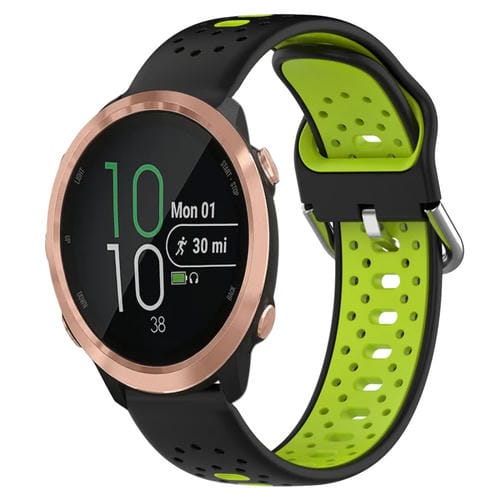 Banda de Reloj Para Garmin Forerunner 645 Music 20mm Silicona Transpirable Dos Colores (Negro + Verde Lima)