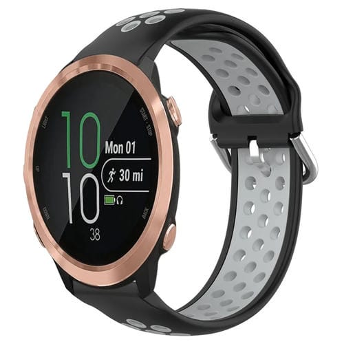 Banda de Reloj para Garmin Forerunner 645 Music 20mm silicona deportiva transpirable perforada (Negro + Gris)