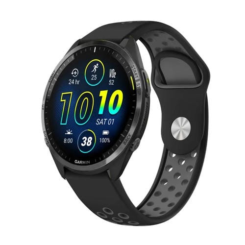 Banda de Reloj de Silicona para Garmin Forerunner 965 22mm Sports Transpirable (Negro + Gris)