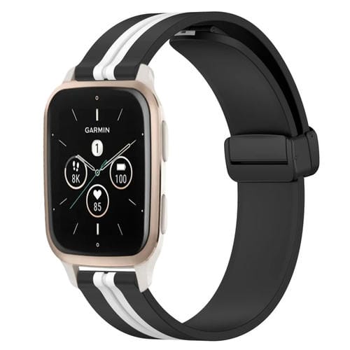 Correa de Reloj 20mm para Garmin Forerunner Sq2 Music Silicona Cierre Magnético Plegable (Negro + Blanco)