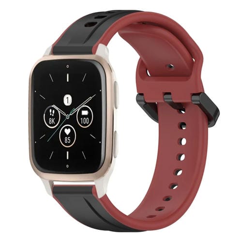 Banda de Reloj Garmin Forerunner Sq2 Music Silicona Dos Colores Bucle Convexo 20mm (Negro + Rojo)