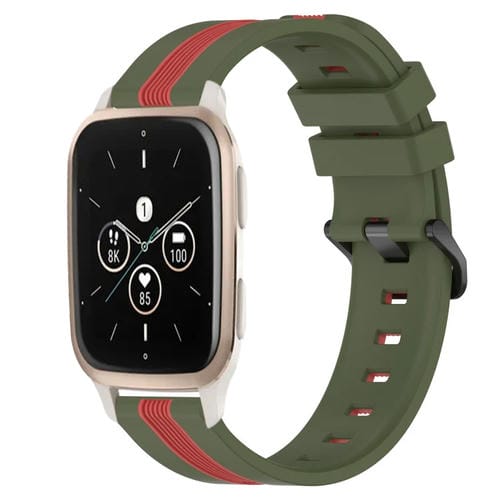 Banda de Reloj Silicona para Garmin Forerunner Sq2 Music 20mm (Verde Militar + Rojo)
