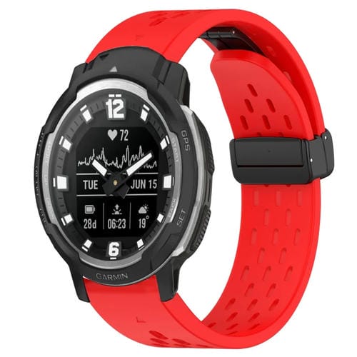 Correa de Silicona para Garmin Instinct Crossover con Orificio y Hebilla Plegable 22mm (Rojo)