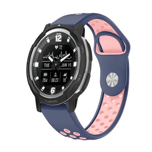 Correa de Silicona 22mm para Garmin Instinct Crossover Solar Sports Transpirable (Azul Medianoche + Rosa)