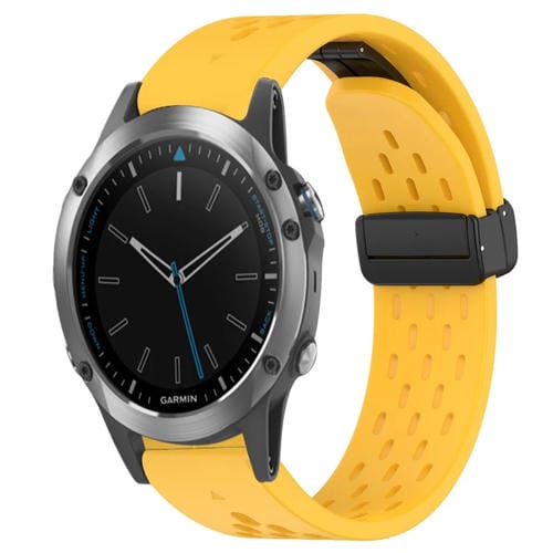 Correa de Silicona para Garmin Quatix 5 con Orificio y Hebilla Plegable 22mm (Amarillo)