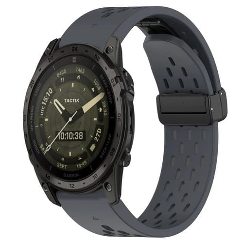 Correa de Reloj Silicona para Garmin Tactix 7 Amoled con Orificio y Hebilla Plegable 26mm (Gris Oscuro)