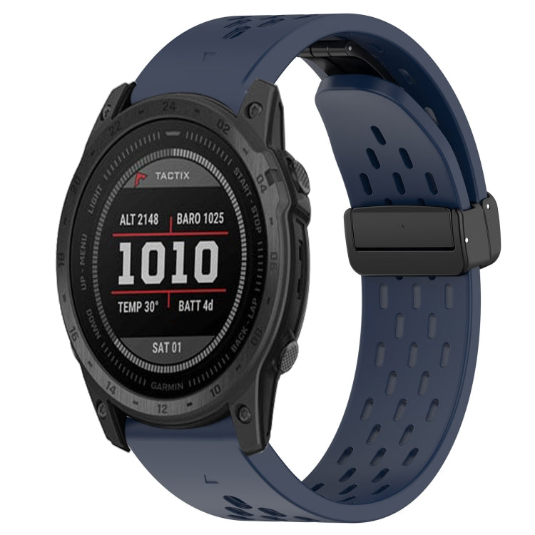Correa de Reloj de Silicona para Garmin Tactix 7 con Orificio y Hebilla Plegable de 26mm (Azul Medianoche)