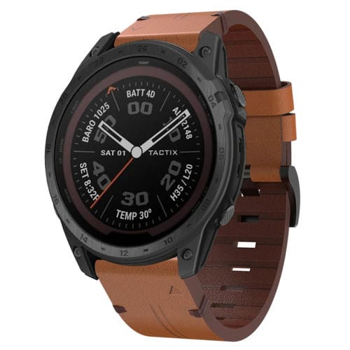 Correa de Reloj para Garmin Tactix 7 Pro 26mm con Hebilla de Acero y Cuero (Marrón)