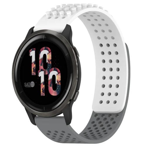 Correa de Silicona para Garmin Venu 2 con Puntos 3D Transpirables y Orificios 22mm (Blanco + Gris)