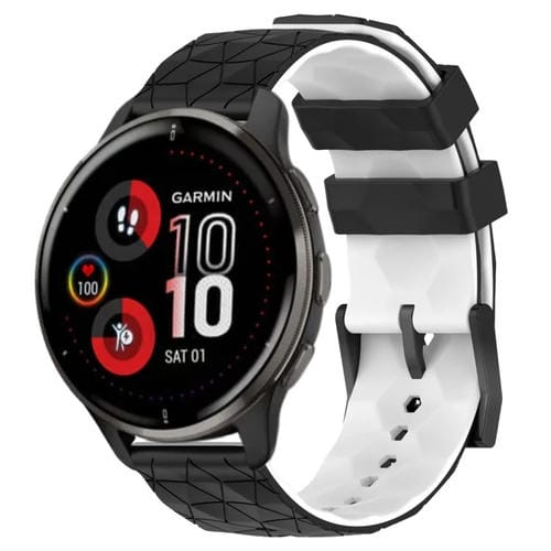 Banda de Reloj Garmin Venu 2 Plus 20mm silicona patrón fútbol dos colores (Negro + Blanco)