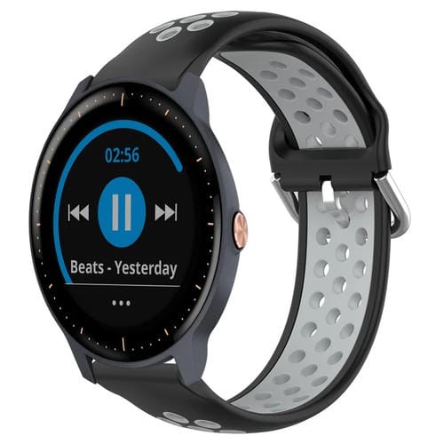 Banda de Reloj silicona deportiva Garmin Vivoactive3 Music 20mm transpirable perforada (Negro + Gris)