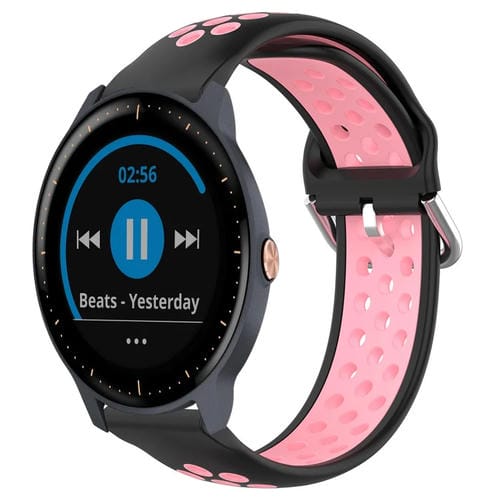 Banda de Reloj de Silicona Deportiva para Garmin Vivoactive3 Music 20mm Transpirable Perforada (Negro + Rosa)