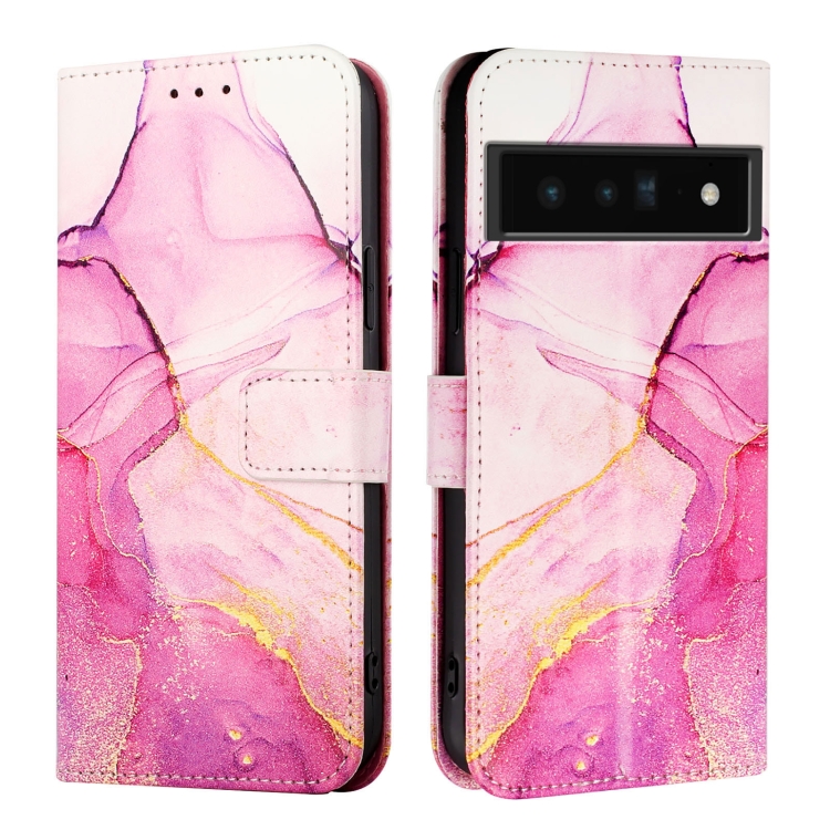 Funda para Google Pixel 6 Pro Pt003 de Cuero con Tapa y Patrón de Mármol (Rosa, Morado y Dorado)