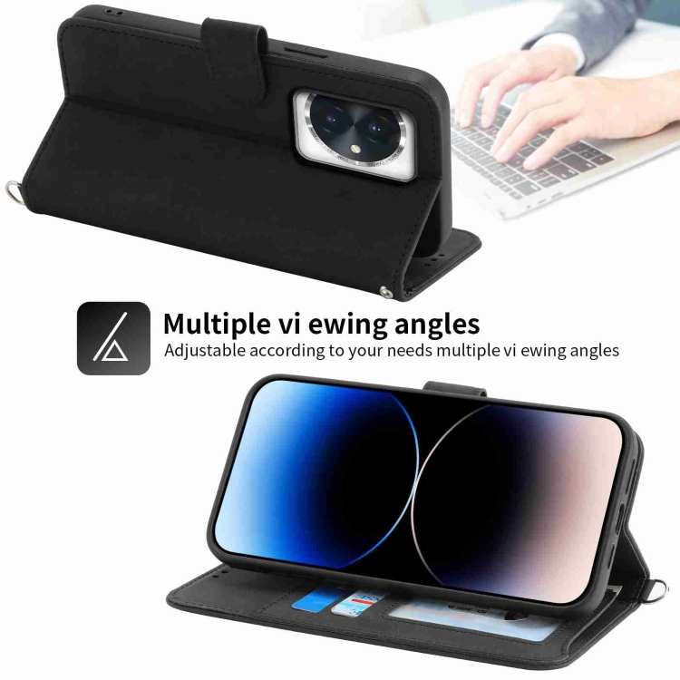 Funda de Cuero para Honor 100 con Billetera en Relieve y Flores con Tacto de Piel (Negro)