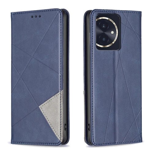 Funda de Teléfono para Honor 100 de Cuero Magnético con Textura Rombo (Azul)