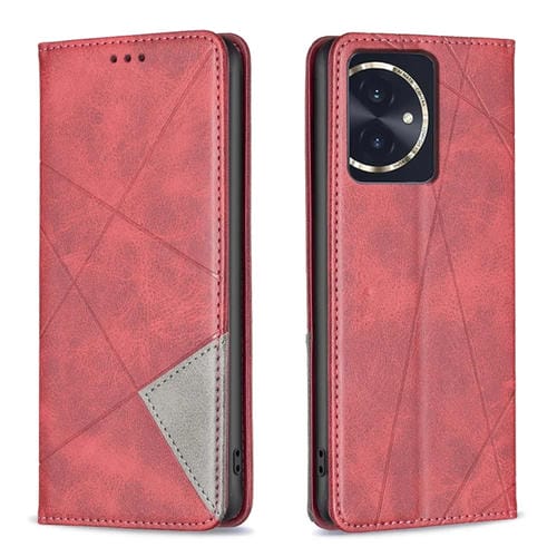 Funda de Cuero Magnética para Honor 100 con Textura Rombo (Rojo)