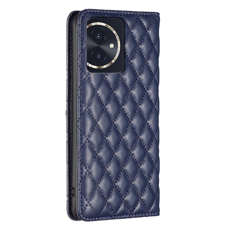 Funda para Honor 100 con Tapa de Cuero Magnético Diamond Lattice (Azul)