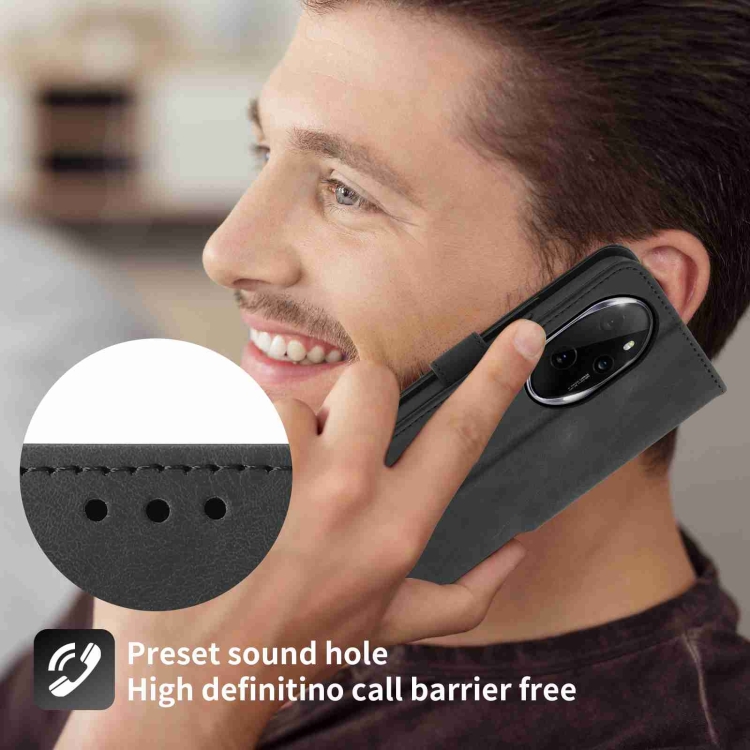 Funda de Cuero para Honor 100 Pro con Billetera, Relieve y Flores con Tacto de Piel (Negro)