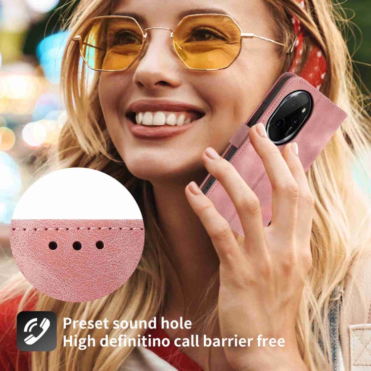 Funda de Cuero para Honor 100 Pro con Billetera en Relieve y Flores (Rosa)