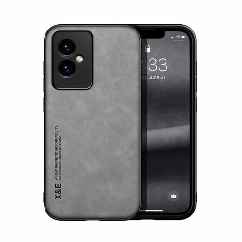 Funda para Honor 100 Skin Feel con Parte Trasera de Cuero Magnético (Gris Claro)