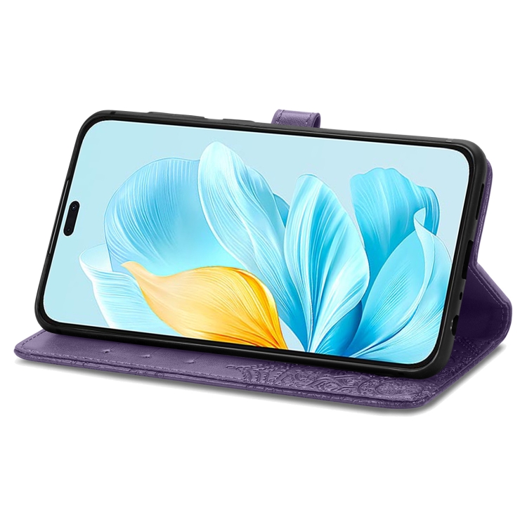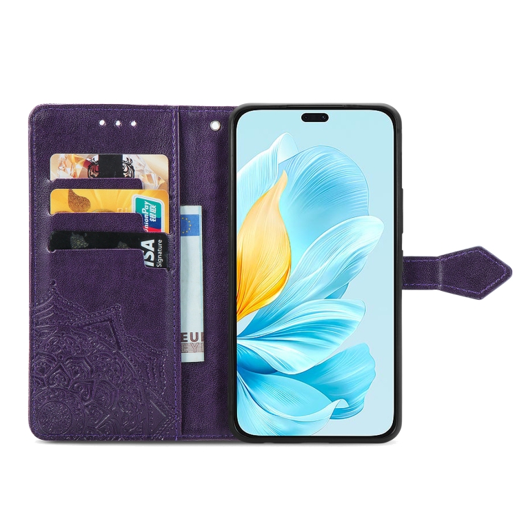 Funda para Honor 200 Lite de Cuero con Relieve de Flores Mandala (Púrpura)