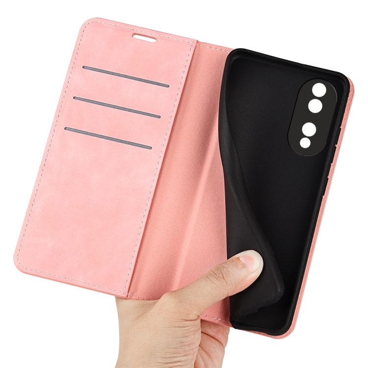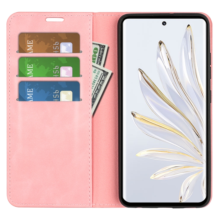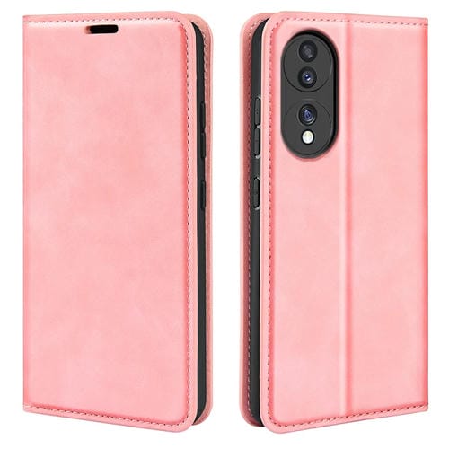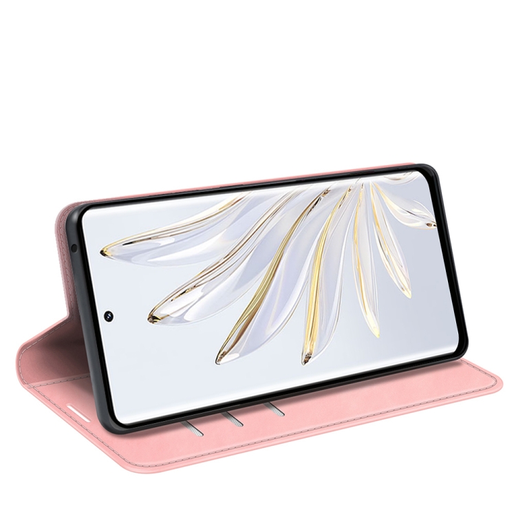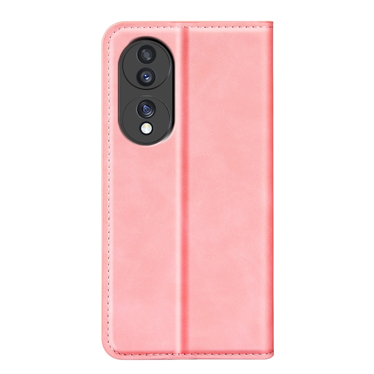 Caja de Teléfono de Cuero para Honor 70 con Succión Magnética Piel Retro (Rosa)