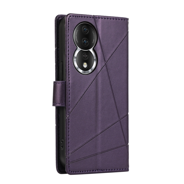 Funda para Honor 80 con Línea en Relieve y Textura de Cuero Genuino PU (Púrpura)