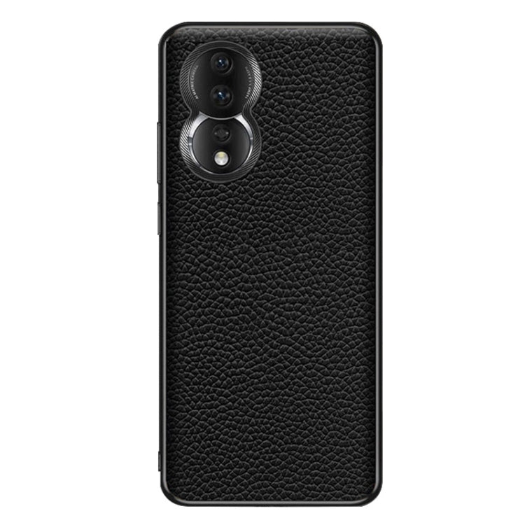 Funda para Teléfono Honor 80 Cuero Genuino Textura Litchi (Negro)