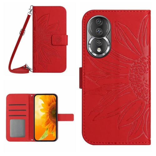 Funda de Cuero Honor 80 Ht04 Skin Feel con Tapa en Relieve y Cordón (Rojo)