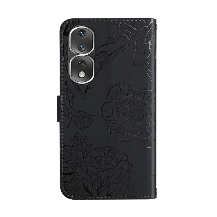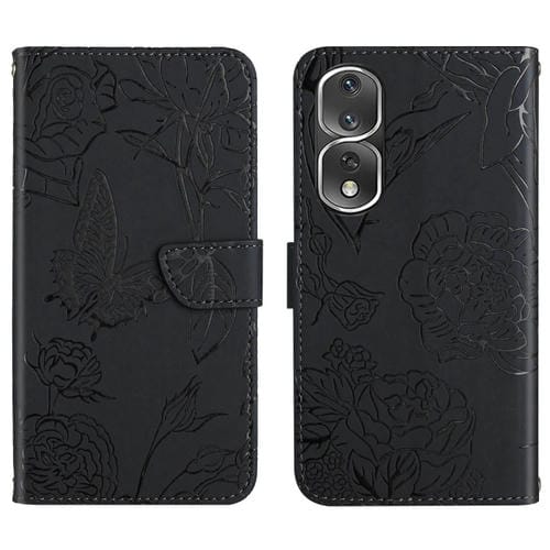 Funda de Cuero para Honor 80 Pro Ht03 con Tapa en Relieve Skin Feel Butterfly (Negro)