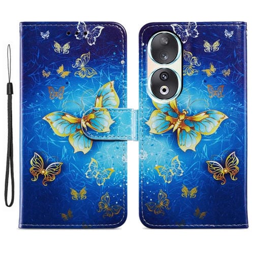 Funda para Honor 90 de Cuero con Tapa Horizontal y Patrón Pintado (Mariposa)