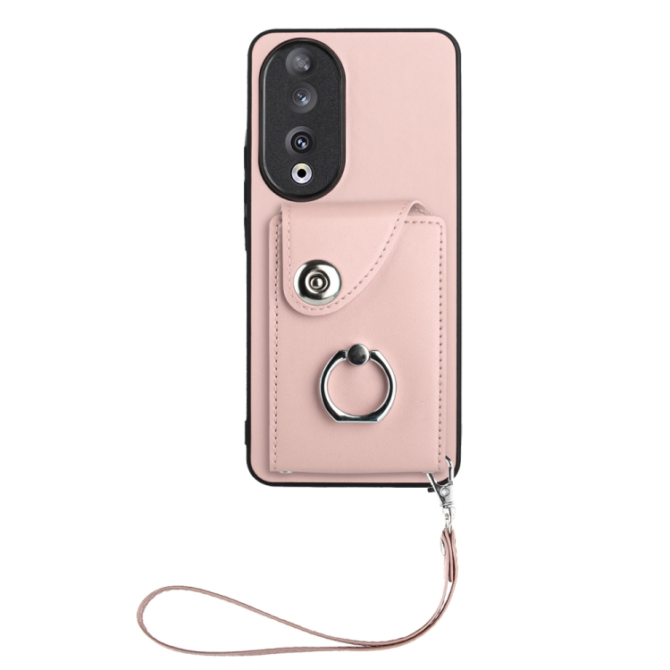 Funda para Honor 90 de PU con Soporte para Anillo y Bolsa para Tarjeta con Cordón (Rosa)