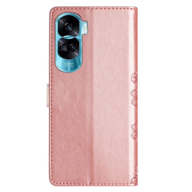 Funda para Honor 90 Lite 5G Cherry Blossom Butterfly Skin Feel de PU en Relieve (Oro Rosa)