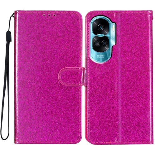 Funda de Cuero para Honor 90 Lite con Tapa y Purpurina en Polvo (Rojo Rosa)