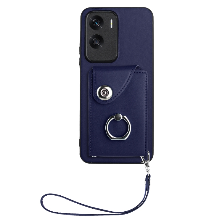 Funda para Honor 90 Lite / X50I de PU con Soporte para Anillo y Bolsa para Tarjeta con Cordón (Azul)