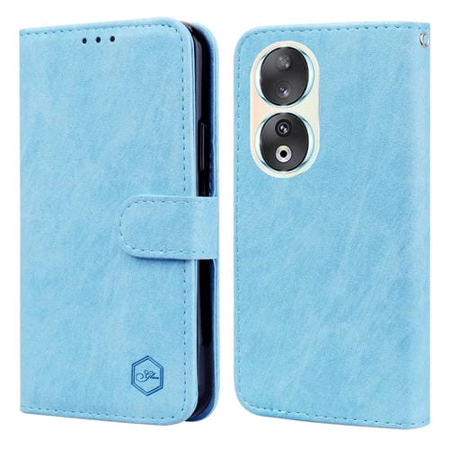 Funda para Honor 90 Skin Feeling Oil Leather Texture PU + TPU (Azul Claro)
