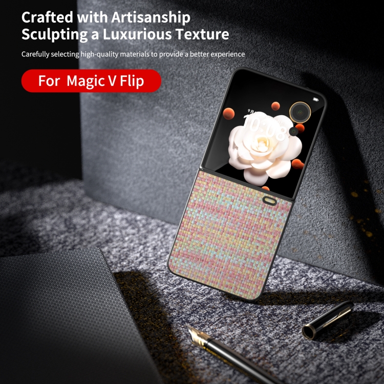 Funda para Honor Magic V Flip con Textura Lattice y Color Rosa en PU