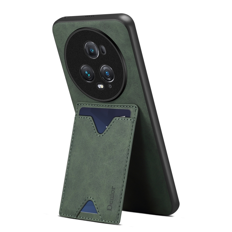 Funda para teléfono Honor Magic5 Ultimate Denior PU Contraportada con Ranura para Tarjeta (Verde)