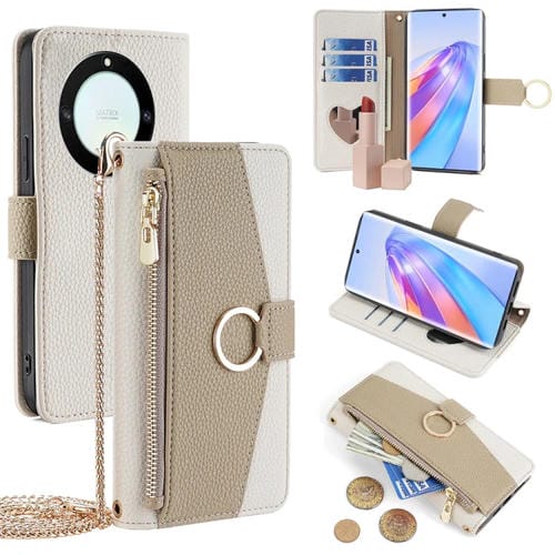 Funda Cruzada de Cuero para Honor X40 con Textura Litchi (Blanco)